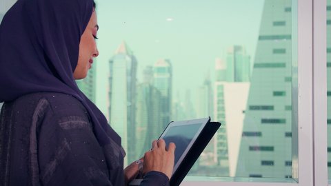 Having a good time outside on the weekend, close-up of a young Saudi Arabian Gulf man wearing traditional dress smoking a hookah in a cafe, chatting and talking with a friend
